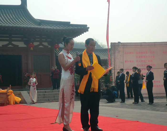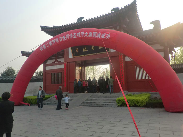 由鞏義市杜甫詩詞學會發起,杜甫故里和杜甫陵園協辦?;顒又卦诰拺咽ベt、弘揚文化,活動有祭祀上香、宣讀祭文、吟唱頌歌、樂舞敬拜、陵園掃墓等議程組成,屆時將會由來自省、市的各界領導,及各類杜甫研究機構、杜氏宗親及我市的大中小學生等數千名人員參加祭拜詩圣活動。由我河南省杜甫機械有限公司主辦并贊助的大型拜祭大典大概在十一點圓滿結束,此意義重大而深遠。