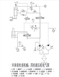 四柱液壓機由主機及控制機構兩大部分組成。液壓機主機部分包括液壓缸、 橫梁、立柱及充液裝置等。動力機構由油箱、高壓泵、控制系統、電動機、壓力 閥、方向閥等組成。