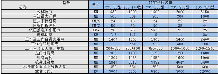液壓壓裝機技術參數: